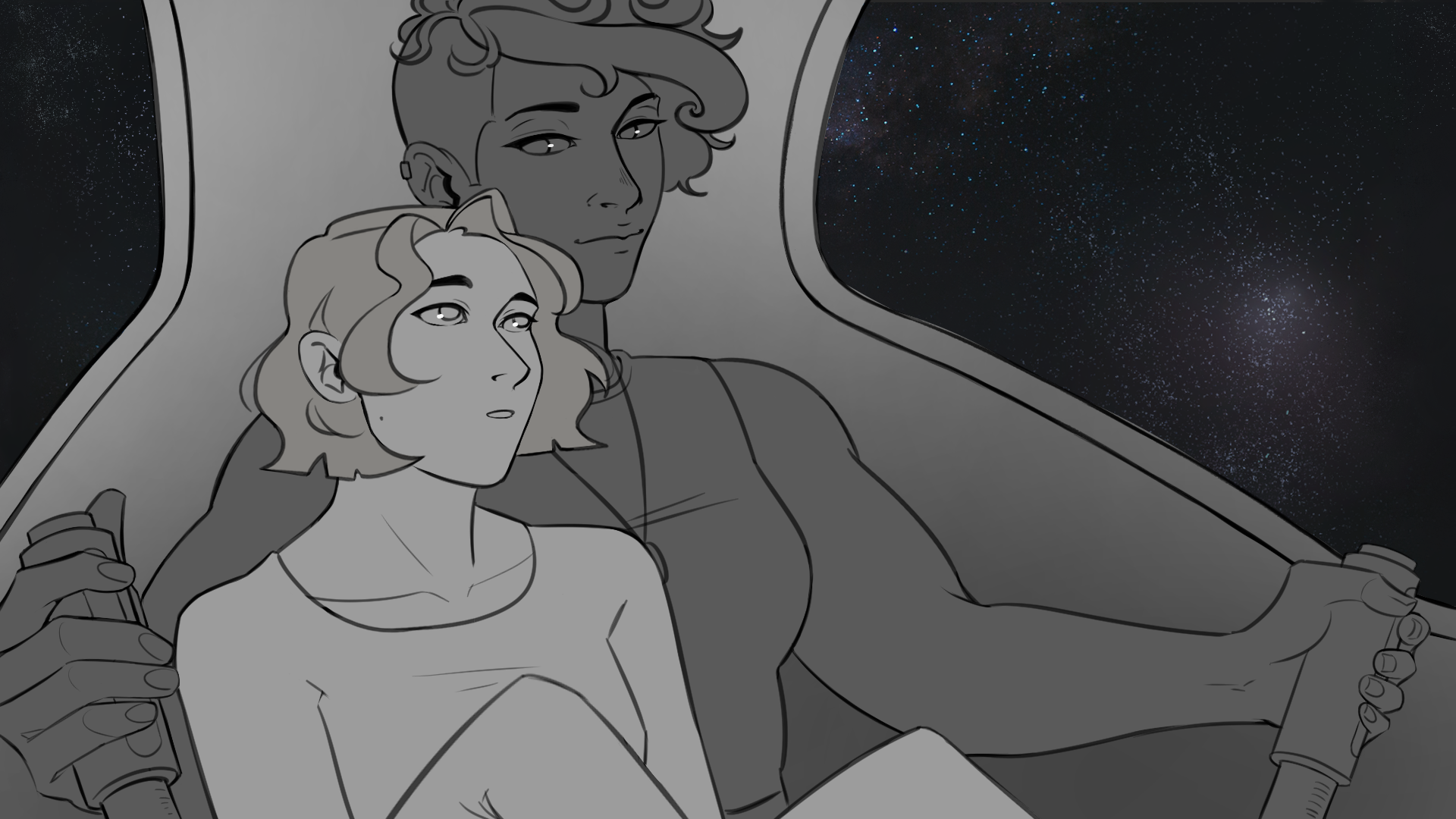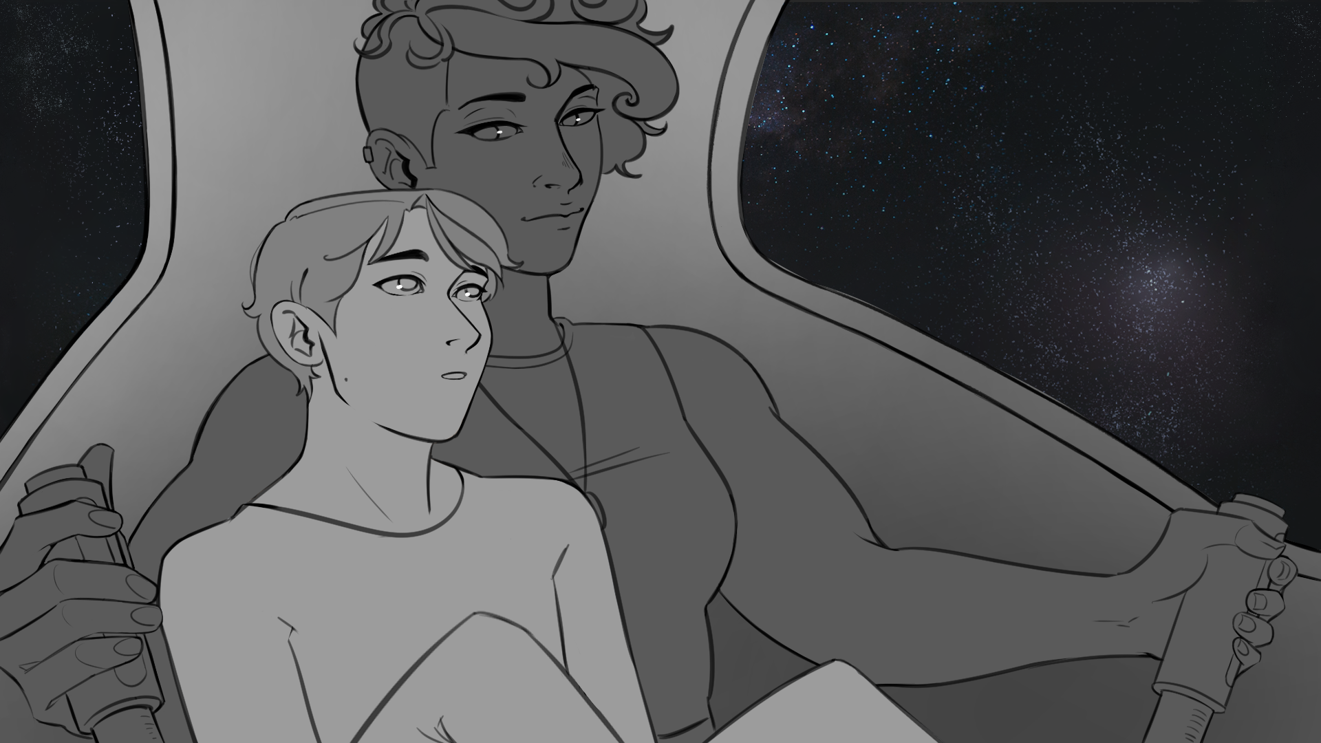 Amarak's first CG is making good progress; Naseem's is getting its lineart in. I'm taking a break from script writing, so more time has gone into backgrounds (my behated). Such as this one!