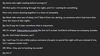 Hi dear friends, I had to skip last week's devlog due to some unfortunate news: I've picked up a pesky drawing injury. I'll keep trying to do what I can, especially now that writing script will be a b...
